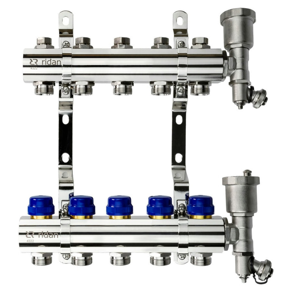 Коллекторная группа FHF-R, на 5 выходов, с воздухоотводчиками, с кронштейнами, Ридан 088U0705R