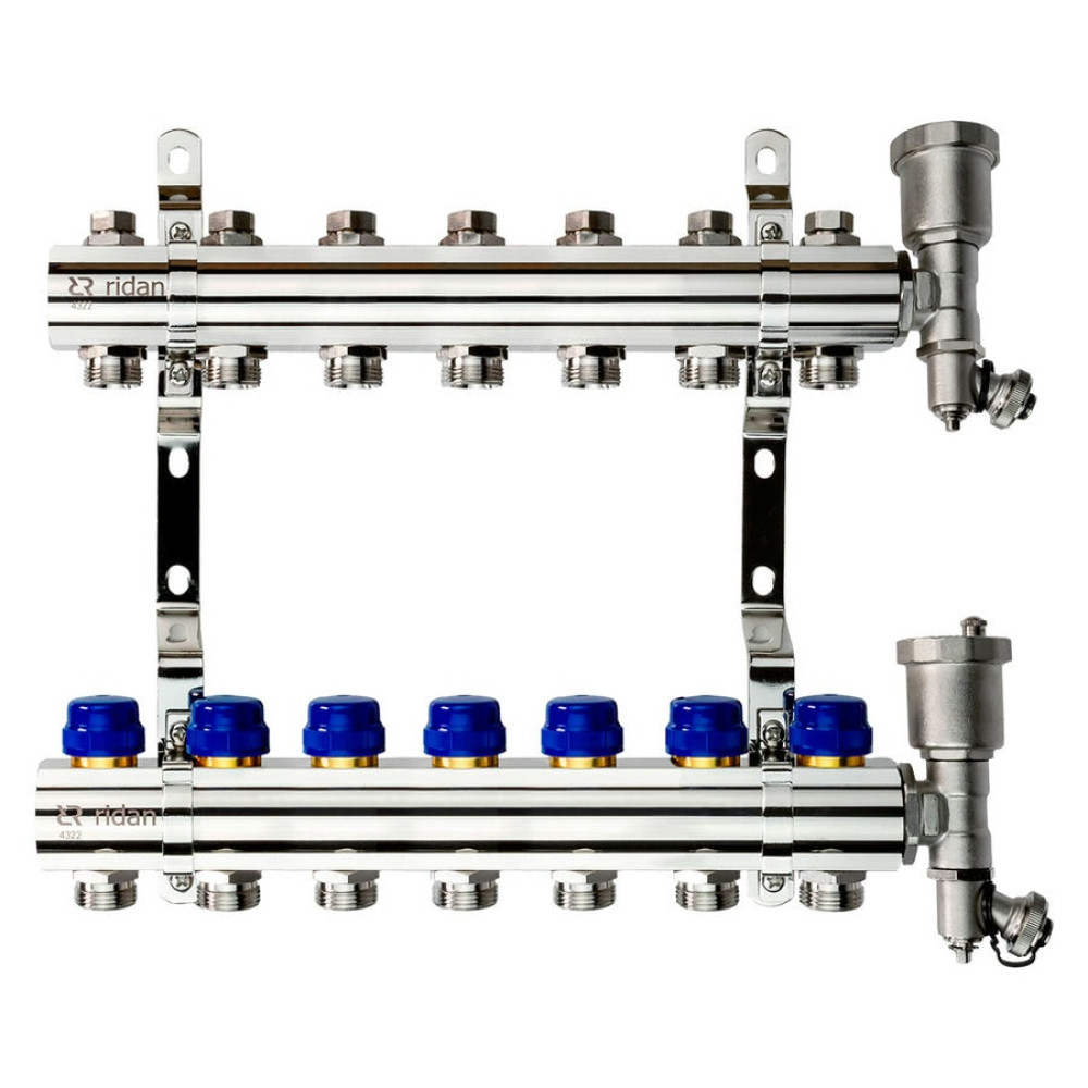 Коллекторная группа FHF-R, на 7 выходов, с воздухоотводчиками, с кронштейнами, Ридан 088U0707R