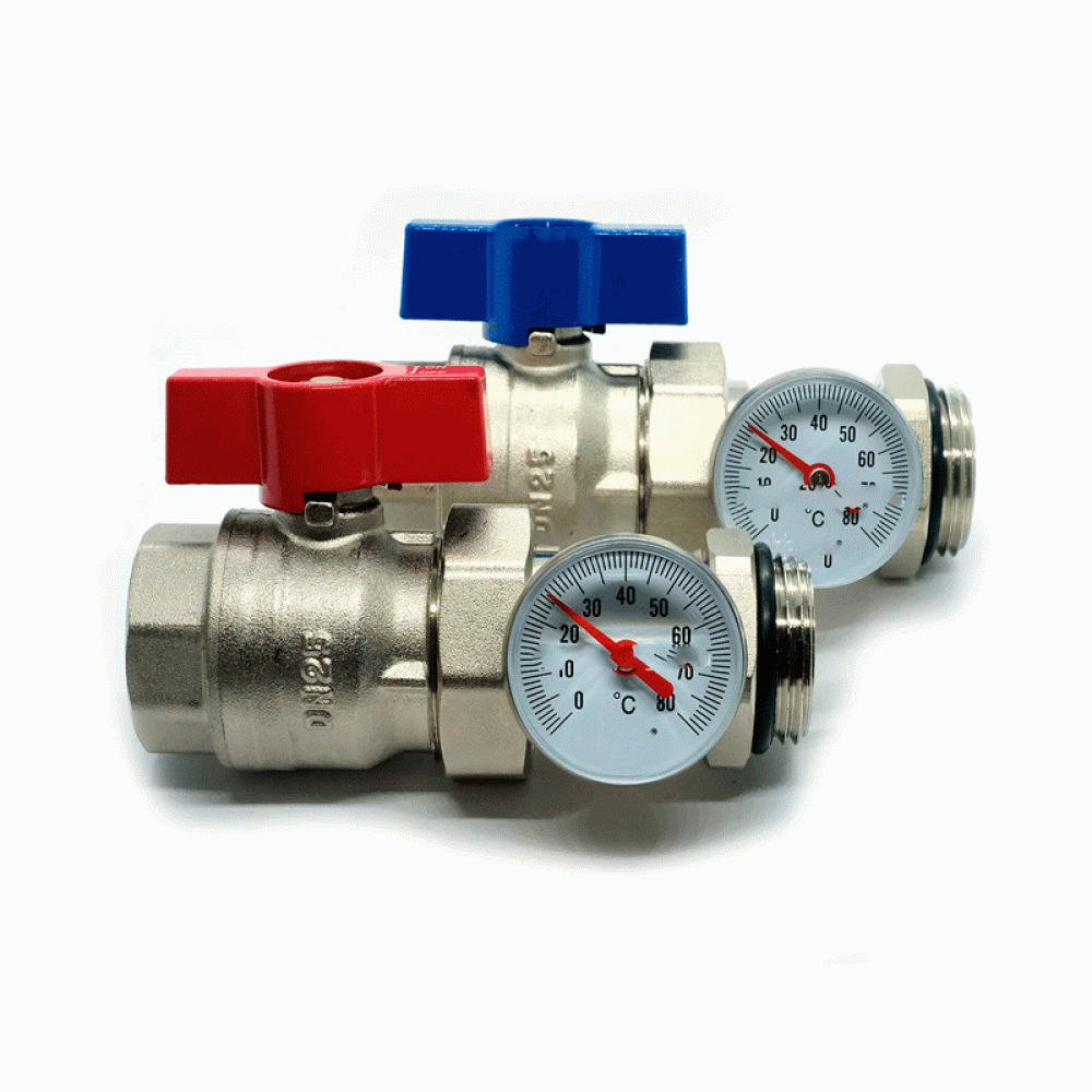 Комплект прямых шаровых кранов с термометрами применяются в системах отопления, кондиционирования, ХВС, ГВС. Изделия производятся из никелированной латуни, предназначены для перекрытия подачи жидкости и контролирования ее текущей температуры. Отличаются компактными размерами, диаметр подсоединения составляет 1 дюйм.
