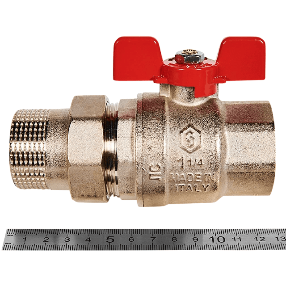 Кран с американкой (бабочка) 1 1/4" Stout красная ручка