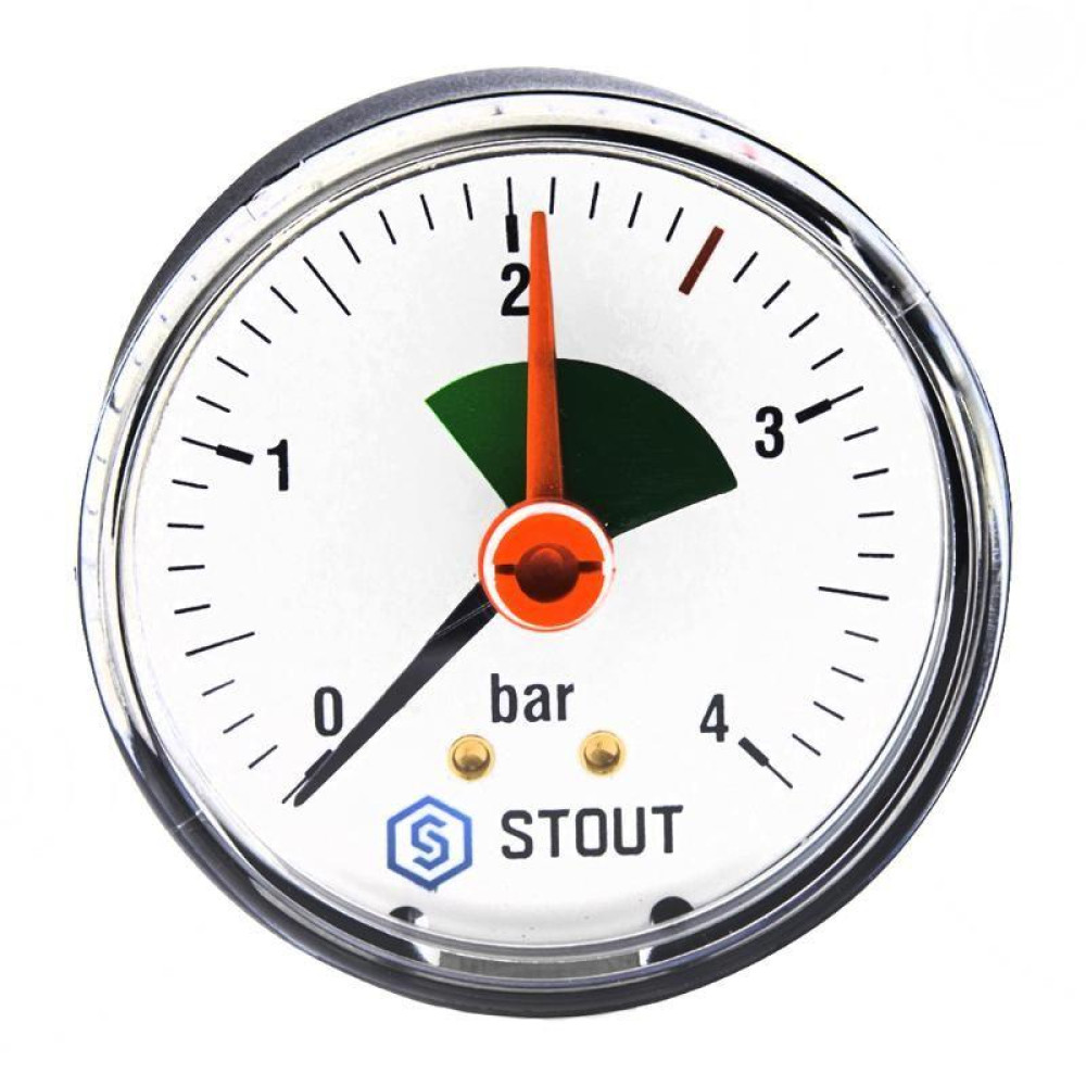 Манометр аксиальный с указателем предела (корпус Dn 50 мм, шкала 0-4 бар, 1/4") Stout