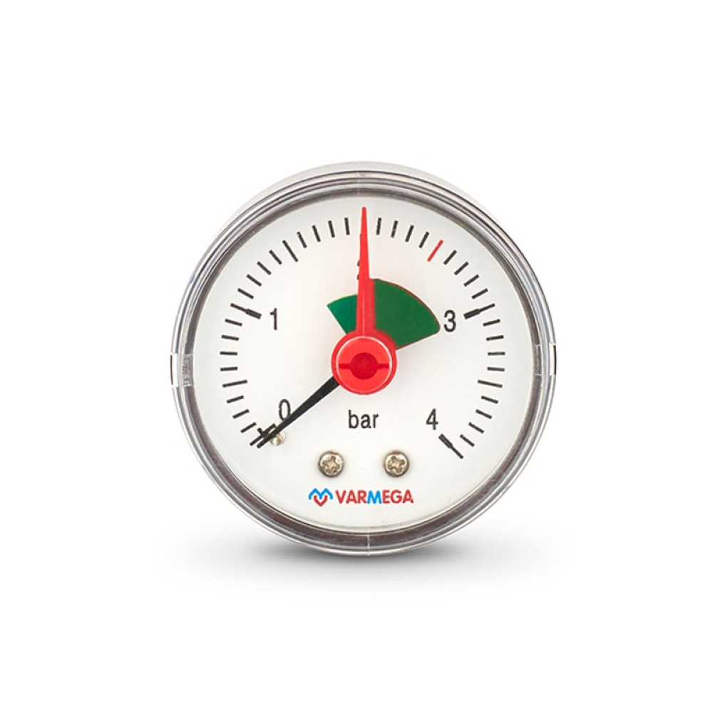 Манометр аксиальный Varmega, 1/4" 63мм, 4 Бар, с указателем предела