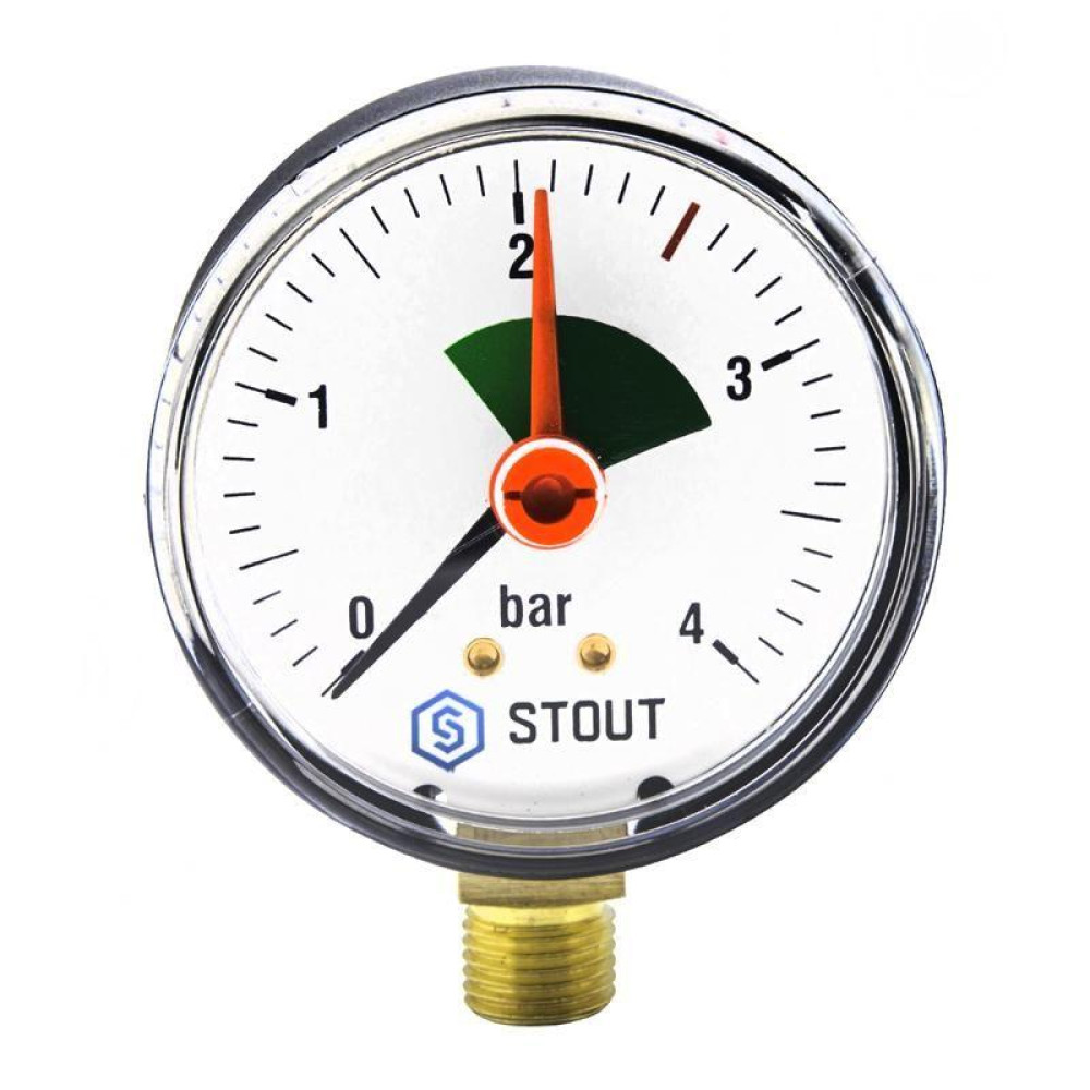 Манометр радиальный с указателем предела (корпус Dn 50 мм, шкала 0-4 бар, 1/4") Stout