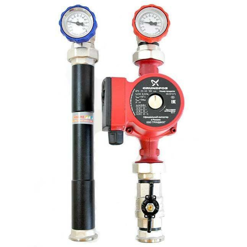 Циркуляционный насос в комплект группы не входит и заказывается отдельно, в зависимости от требуемых характеристик контура теплого пола, радиаторного отопления или бойлера.
