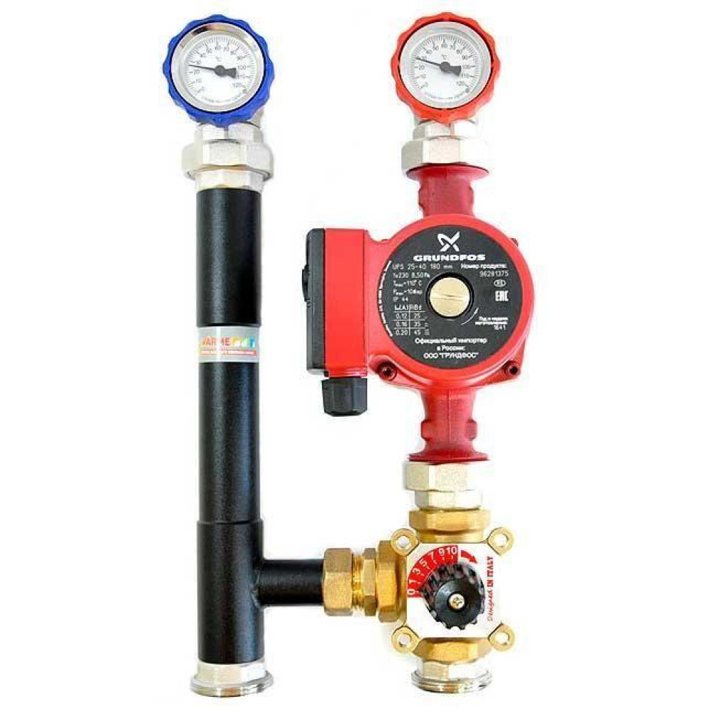 Циркуляционный насос в комплект группы не входит и заказывается отдельно, в зависимости от требуемых характеристик контура теплого пола/радиаторного отопления/бойлера.