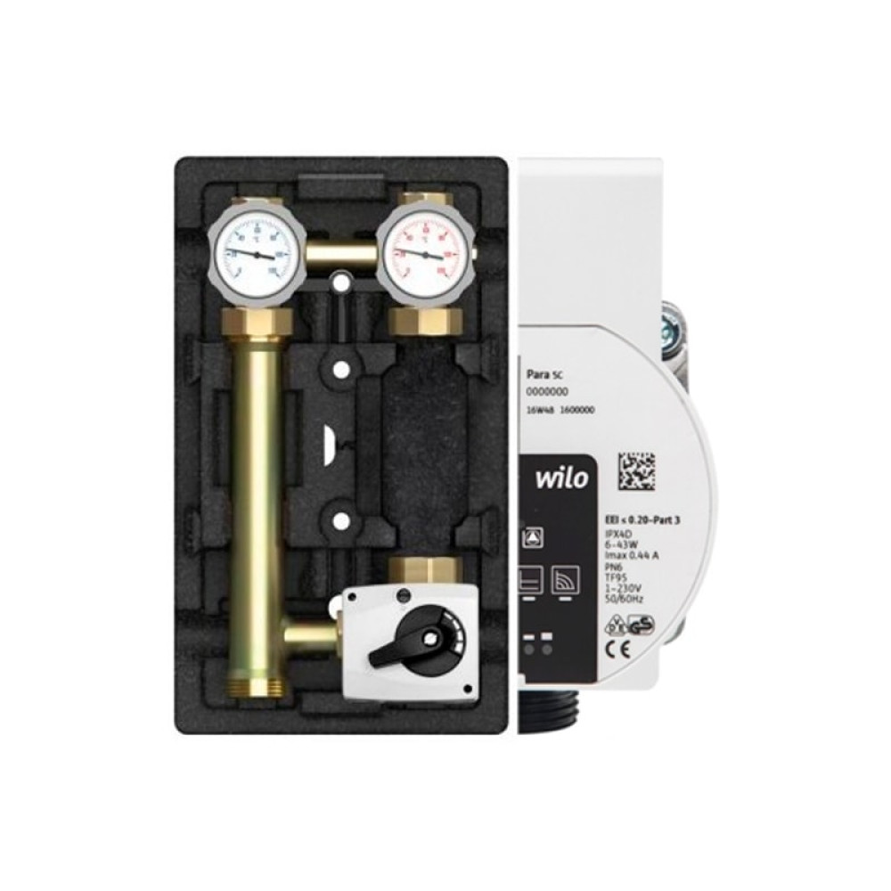 Насосная группа MK 1" Meibes M66831.36WIMRU оснащена энергоэффективным циркуляционным насосом Wilo PARA SC 25-7.0. Насос Wilo PARA SC 25-7.0 имеет номинальный напор 7 м водного столба. Рабочее давление от 0,5 до 10 бар. Потребляемая мощность насоса составляет до 50 Вт. Аббревиатура SC показывает, что это насос с автоматической регулировкой (Self control).