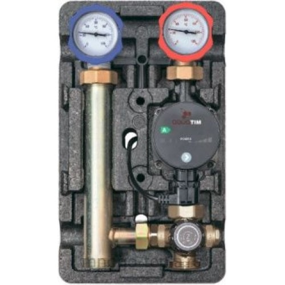 Насосная группа TIM быстрого монтажа NG-TK-0101 с термосмесителем представляет собой готовый комплект арматуры в сборе (без насоса), предназначенный для принудительной циркуляции теплоносителя в системе. Может применяться в любом прямом контуре, т.е. в контуре, в котором теплоноситель подается напрямую от источника тепла без охлаждения: контур радиаторного отопления, контур загрузки бака ГВС, контур вентиляции. В качестве теплоносителя могут использоваться жидкости, неагрессивные к материалам изделия: вода, растворы на основа гликоля. Максимальное содержание гликоля до 40%.