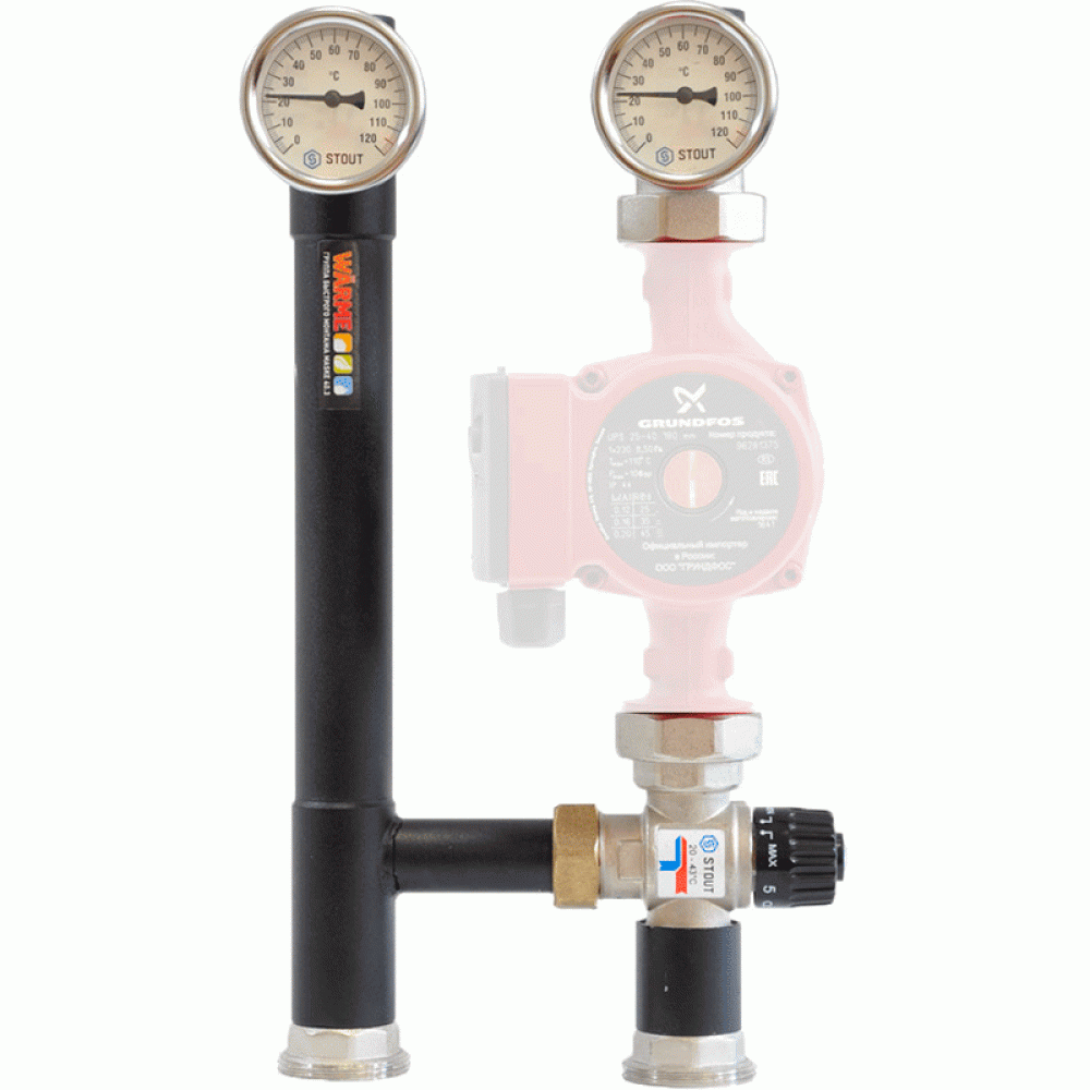 Группа быстрого монтажа WARME MASKE 35.3 G (20-43) представляет собой готовый комплект арматуры и предназначена для присоединения контура теплого пола, бойлера, радиаторного отопления с автоматической регулировкой заданной температуры жидкости с помощью автоматического термостатического смесительного клапана, установленного в подающей линии. Диапазон температуры 20-43°С.