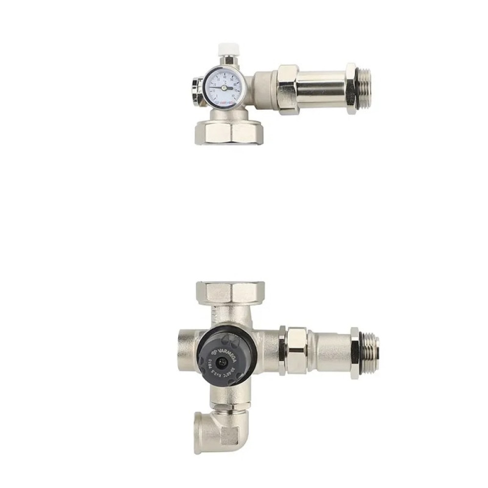 Насосно-смесительный узел Varmega Varmix 4TMV с четырехходовым термосмесительным клапаном предназначен для создания низкотемпературных систем отопления (типа «теплый пол»). Устанавливается непосредственно на коллекторной группе низкотемпературного контура с межосевым расстоянием 210–212 мм и подключается к высокотемпературному контуру системы отопления.