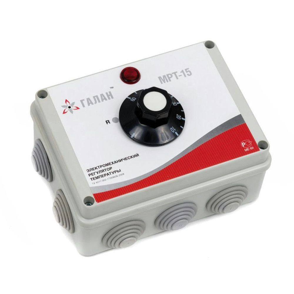 Электромеханический регулятор температур «МРТ-15» предназначен для поддержания заданного теплового режима работы электрических водонагревателей до 6 кВт на 220V или до 9 кВт на 380V. Регулирование температуры осуществляется в диапазоне от 10° до 60° С по температуре обратной трубы. Канал защиты от перегрева обеспечивает отключение нагрева при достижении температуры падающей трубы примерно 90° С.