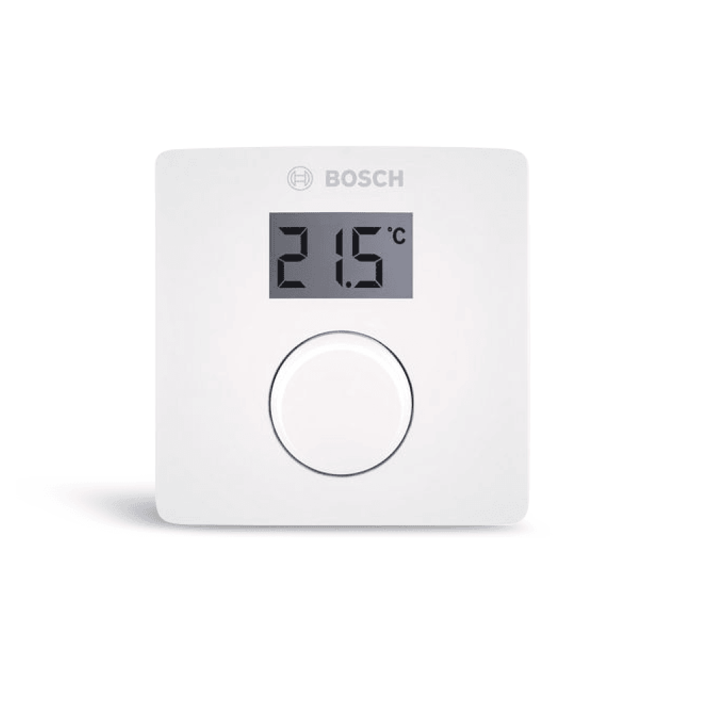 Термостат Bosch CR10 (Open Therm) позволяет управлять одним отопительным контуром по комнатной температуре, в том числе, дистанционно. Совместим со всеми газовыми настенными котлами GAZ 6000 или с шиной EMS 2. Диапазон регулировки температуры помещения от +5 до +30 °С.