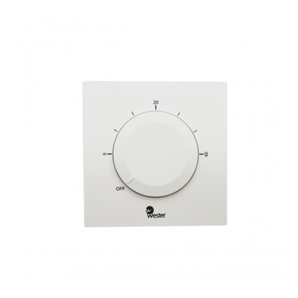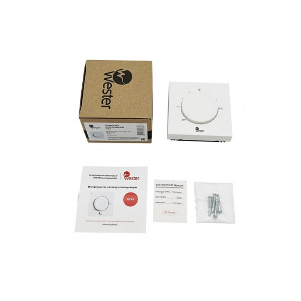 Электронный аналоговый комнатный термостат WESTER RT68 с шкалой предназначен для поддержания заданной температуры в помещении путем управления оборудованием или отдельными элементами климатических систем.