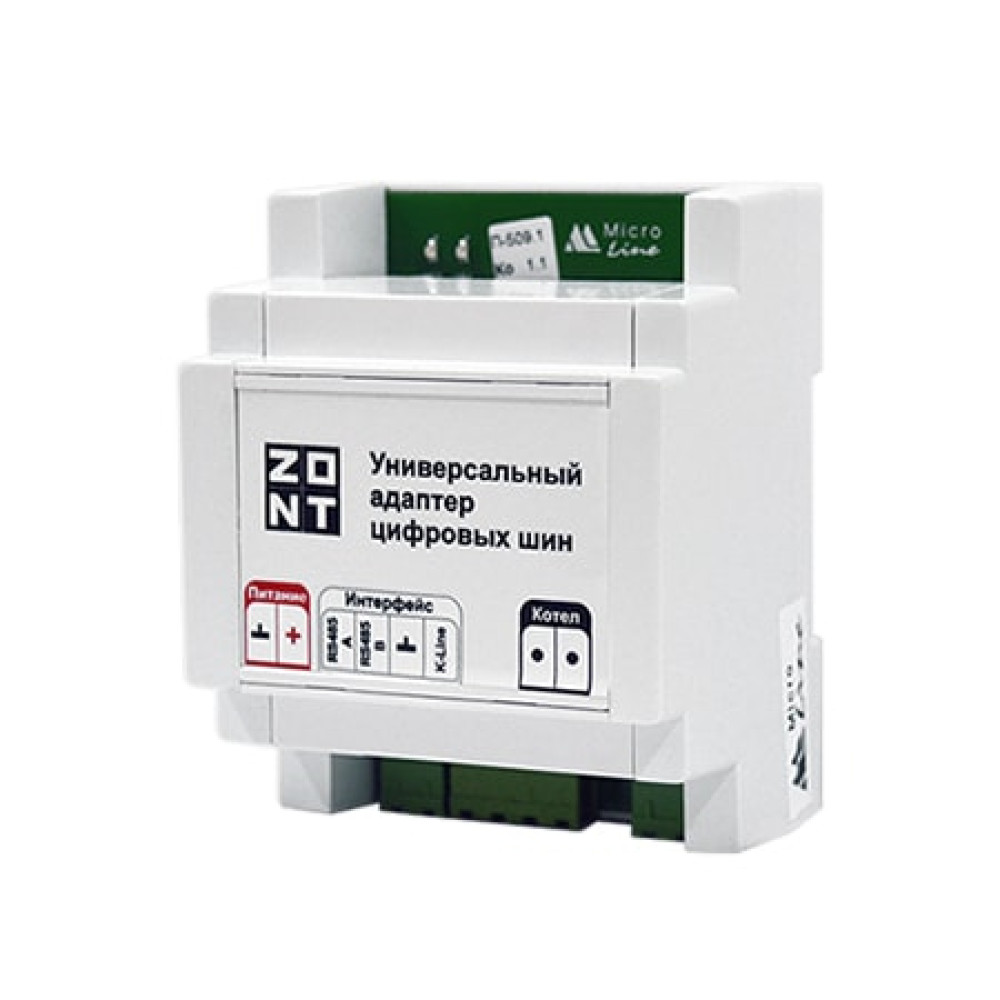 Универсальный адаптер цифровых шин предназначен для подключения термостатов и контроллеров ZONT к газовым и электрическим котлам, работающим по цифровым протоколам OpenTherm, E-BUS, BridgeNet (Ariston), BSB (Baxi), Navien – проверить наличие шины в конкретной модели котла можно в Совместимости котлов с ZONT.