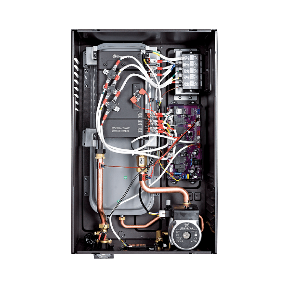 THERMEX (Термекс) Sonne 12 Wi-Fi (Grey) представляет собой электрический котел отопления, выполненный в компактном металлическом корпусе черного цвета. Модель оснащена модулем Wi-Fi, благодаря чему управлять ею можно при помощи смартфона. Также доступно управление с голосовым помощником Алиса. Циркуляционный насос встроен.