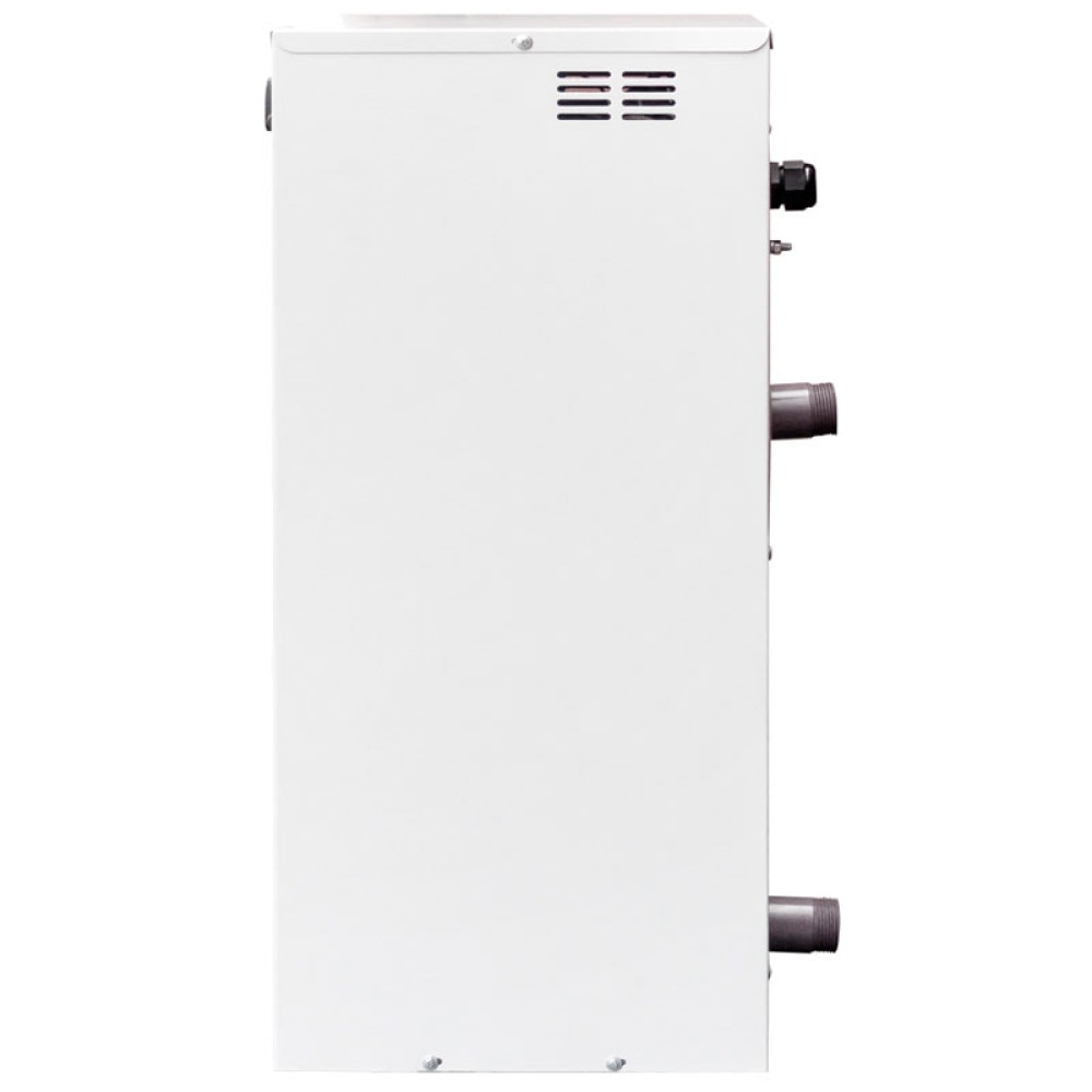 Оснащен встроенным механическим пультом управления для регулирования и поддержания температуры нагрева теплоносителя. Патрубки, предназначенные для присоединения электрокотла к системе отопления паралельны друг-другу (патрубок на подачу и «обратка» – горизонтальные).