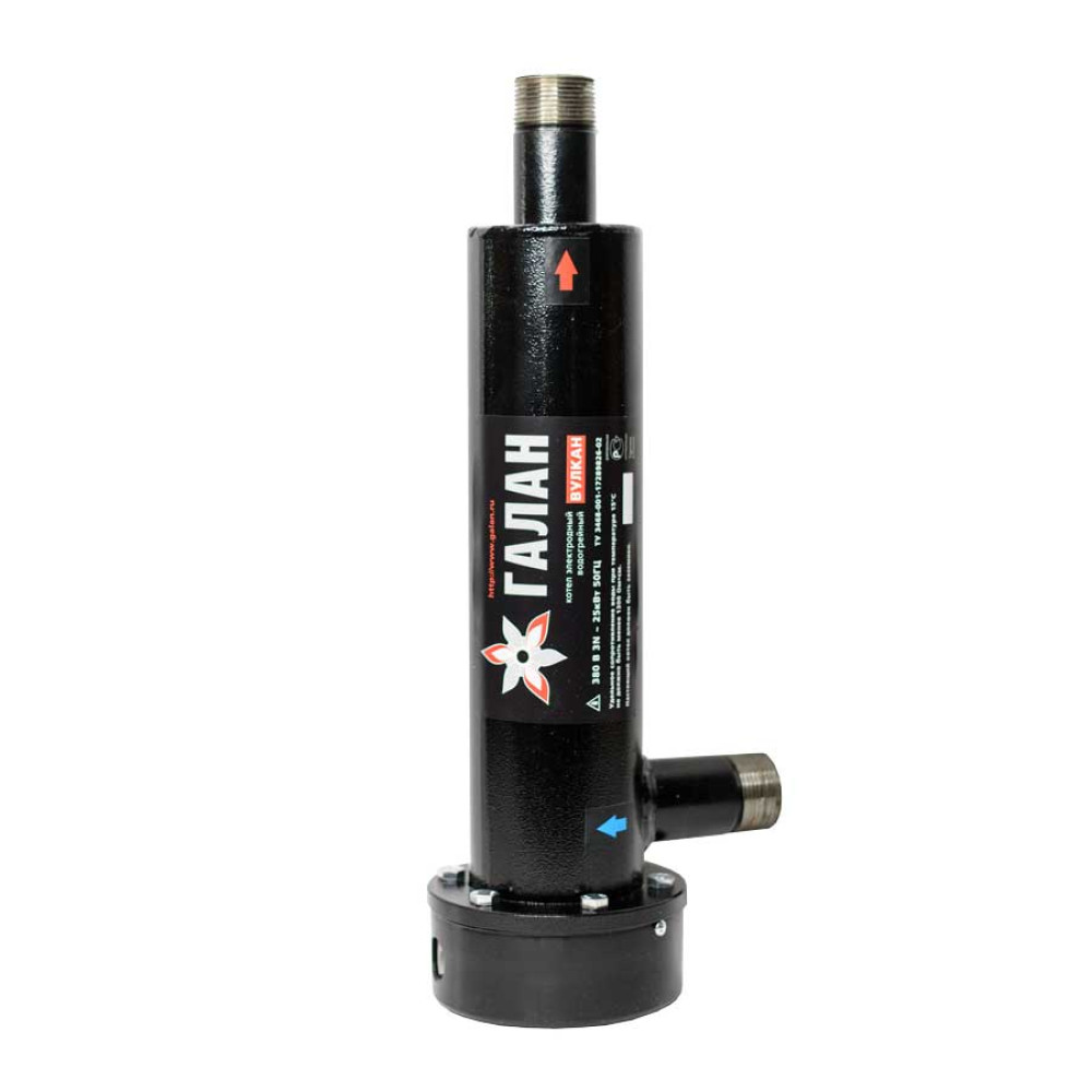 Процесс нагрева теплоносителя в электроводонагревателе ГАЛАН Вулкан-25 (25 кВт) происходит за счет его ионизации, т. е. расщепления молекул теплоносителя на положительные и отрицательно заряженные ионы, которые двигаются, соответственно, к отрицательному и положительному электродам, выделяя при этом энергию, т. е. процесс нагрева теплоносителя идет напрямую, без "посредника" (например ТЭНа). Ионизационная камера, где происходит этот процесс, небольшого размера, поэтому следует резкий разогрев теплоносителя и, как следствие, повышение его давления (при максимальной мощности прибора - до 1 атмосферы). Таким образом, электроводонагреватель "Галан" является одновременно нагревательным прибором и циркуляционным насосом, что экономит потребителю немало средств.