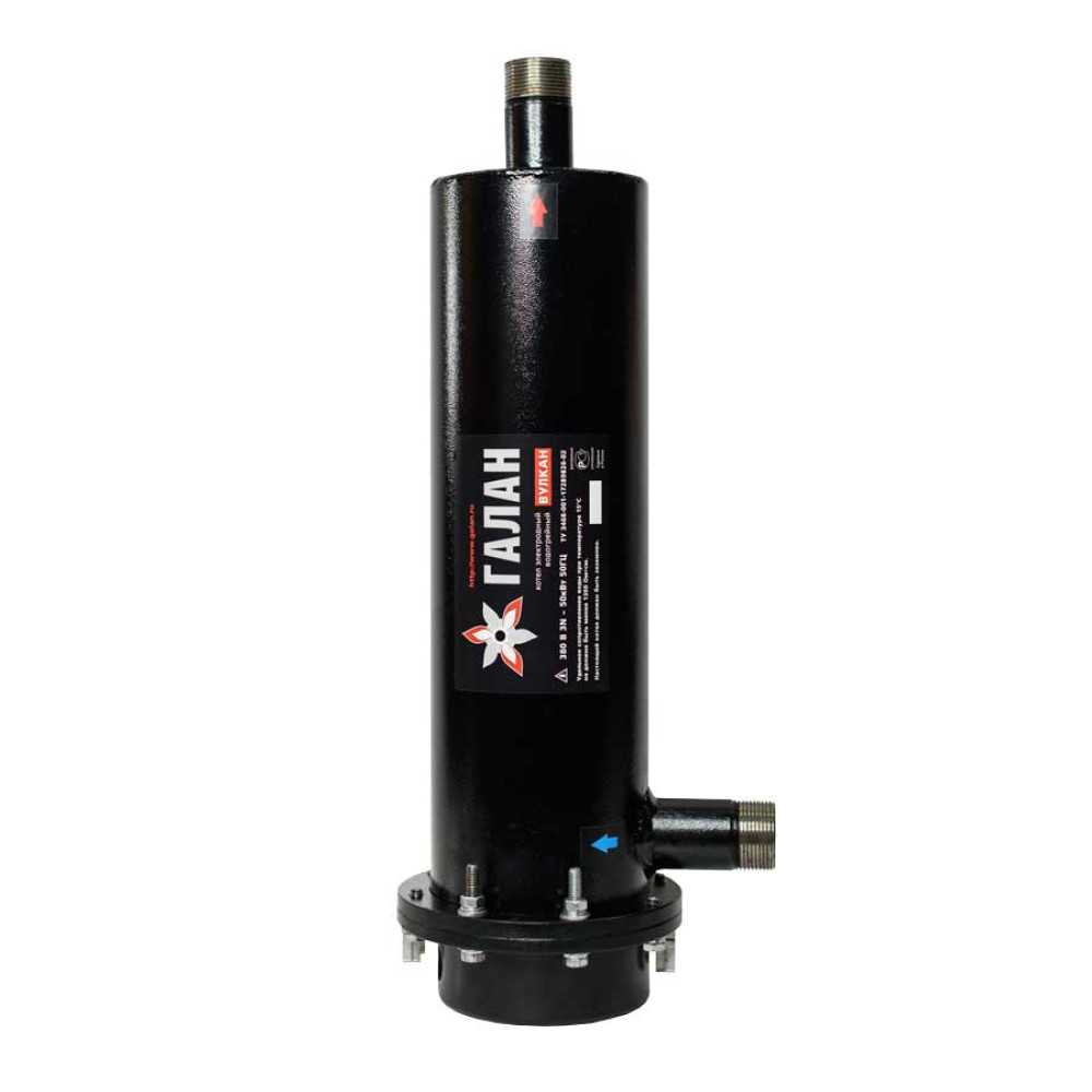Процесс нагрева теплоносителя в электроводонагревателе ГАЛАН Вулкан-50 (50 кВт) происходит за счет его ионизации, т. е. расщепления молекул теплоносителя на положительные и отрицательно заряженные ионы, которые двигаются, соответственно, к отрицательному и положительному электродам, выделяя при этом энергию, т. е. процесс нагрева теплоносителя идет напрямую, без "посредника" (например ТЭНа). Ионизационная камера, где происходит этот процесс, небольшого размера, поэтому следует резкий разогрев теплоносителя и, как следствие, повышение его давления (при максимальной мощности прибора - до 1 атмосферы). Таким образом, электроводонагреватель "Галан" является одновременно нагревательным прибором и циркуляционным насосом, что экономит потребителю немало средств.