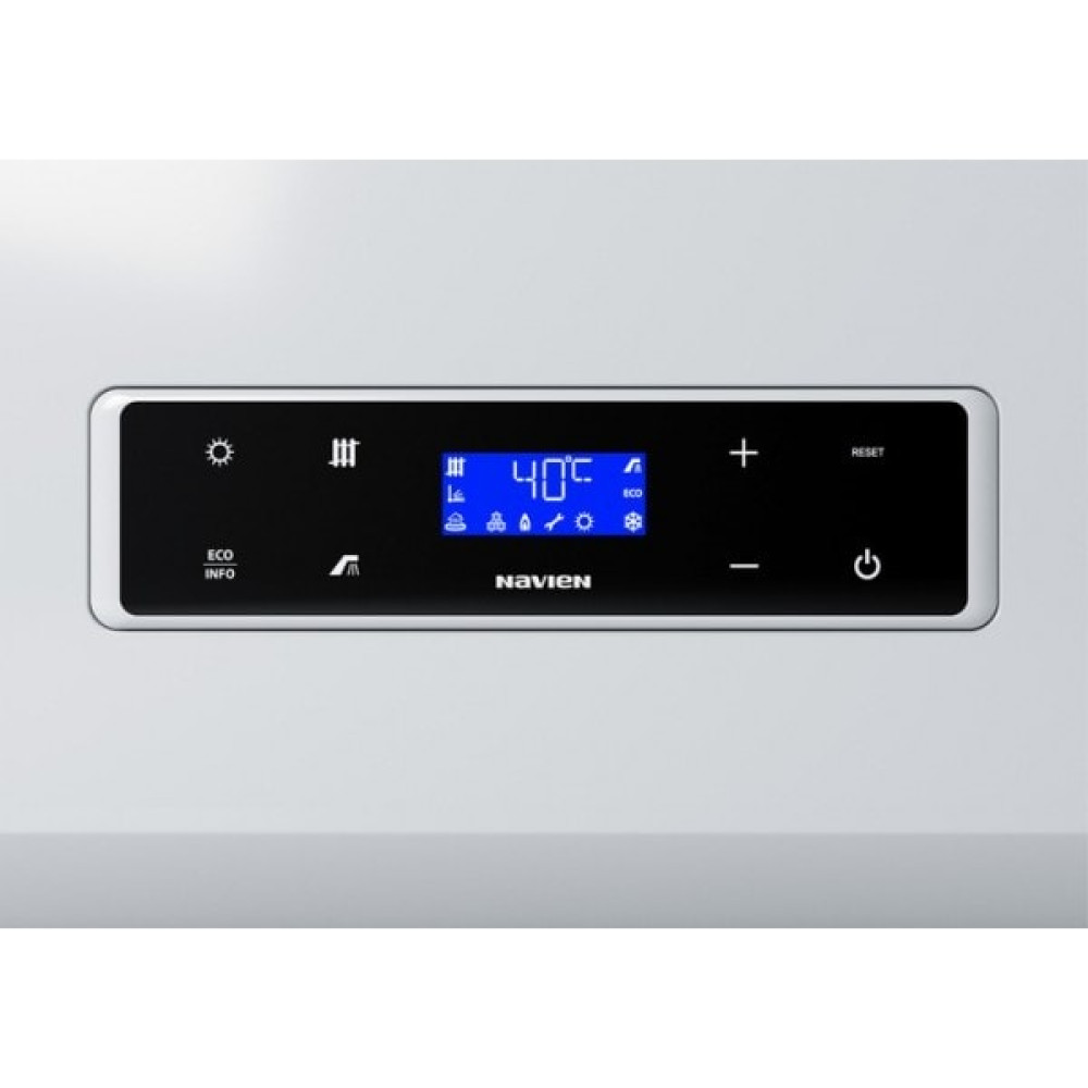 Настенный газовый двухконтурный конденсационный котёл Navien NCB 700 35 K - Это новое направление котлов для отопления вашего дома от Корейского производителя. Котёл NCB 700 обладает двойным теплообменником из нержавеющей стали, модулируемой горелкой с повышенным КПД - 107,8 %. Котёл идёт в комплекте с выносным пультом управления с сенсорным экраном. Благодаря встроенному газовому клапану разряжения, котёл стабильно работает даже при низком давлении и больших перепадах.