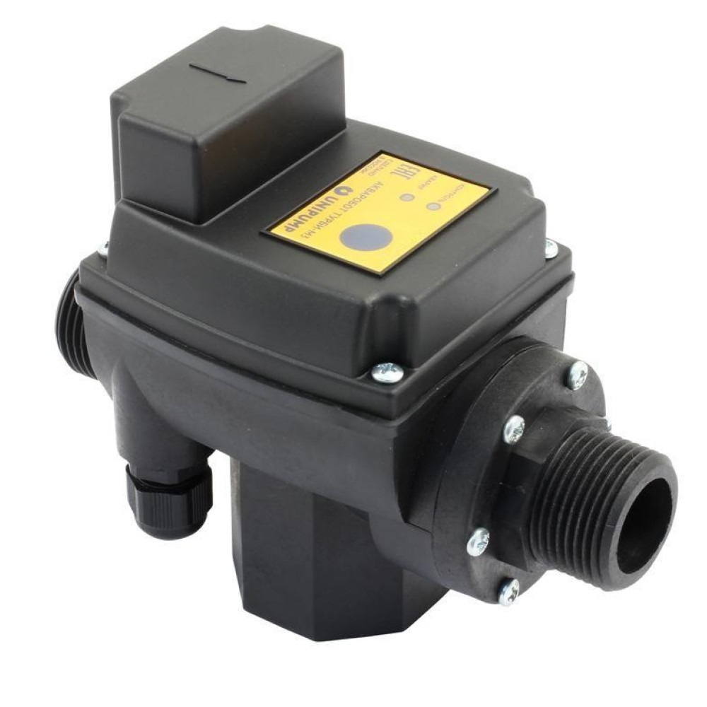 Блок управления автоматически включает насос при скорости потока более 2 л/мин или при падении давления ниже Рмин, и, с тридцатисекундной задержкой, отключает насос при скорости потока менее 2 л/мин.