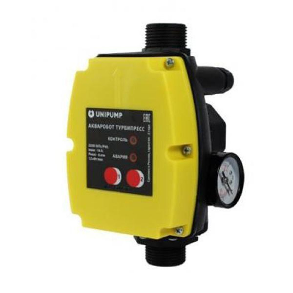 Блок АКВАРОБОТ ТУРБИПРЕСС — предназначен для автоматического управления однофазными поверхностными и погружными насосами мощностью до 1,5 кВт или до 2,2 кВт.