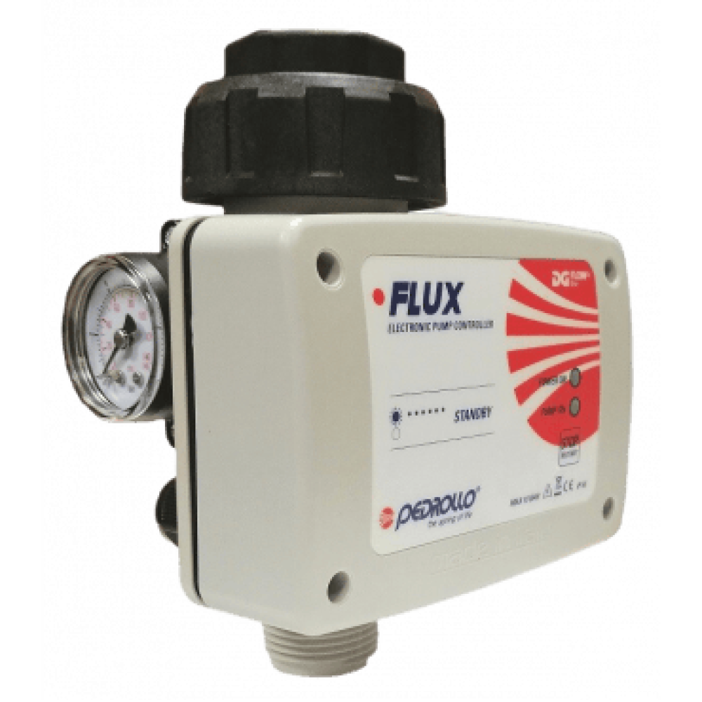 Блок автоматики FLUX — это регулятор расхода для управления и защиты однофазных насосов мощностью до 2 л/с, устанавливаемых с отрицательной всасывающей головкой или с контролем по акведуку. Блок автоматики FLUX предназначен для бытового использования. Электронный регулятор расхода запускает насос после снижения давления (при включении крана) и останавливает его, когда расход составляет менее 2 литров в минуту.