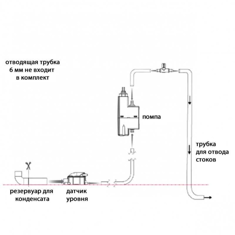 Конденсат сначала попадает в накопительный резервуар, далее, когда уровень поступившей жидкости увеличивается, срабатывает насос для удаления поступивших стоков.