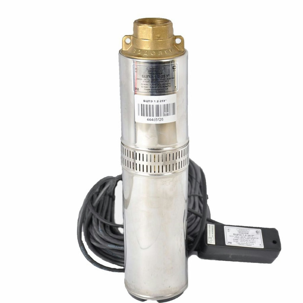 Насос колодезный Водолей БЦПЭ 1,2-80 У Украинского производства с повышенной производительностью объёмной подачи воды. Данные насосы широко используются для обеспечения водой из скважин, колодцев различных ёмкостей и рек. Все насосы водолей БЦПЭ 1,2 имеют встроенный кабель с конденсаторной коробкой на конце провода, тепловое реле для защиты двигателя от перегрева. Максимальная производительность равна 4,3 м/куб час. Насос Водолей предназначен для перекачивания чистой холодной воды без примесей.