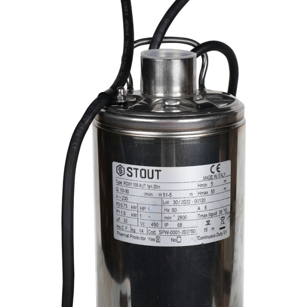 Погружной колодезный насос STOUT предназначен для перекачивания воды из глубоких и узких колодцев и скважин. Жидкость должна быть чистой, без длинноволокнистых включений и крупных твердых частиц.