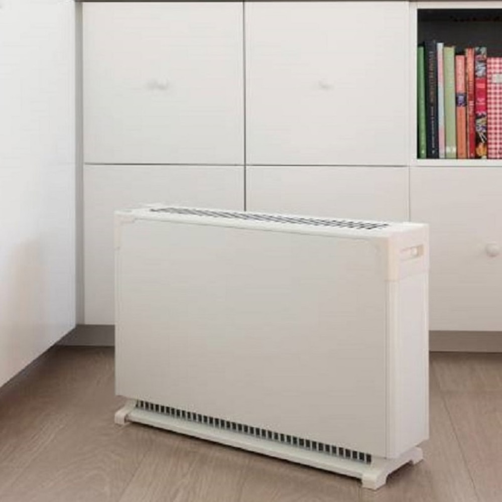 Конвектор оснащен высокоточным электронным термостатом. У него ударопрочные боковые поверхности корпуса. Несмотря на то, что конвектор имеет очень низкую температуру поверхности, он также защищен защитной пластиной, на которой он стоит. Это гарантирует, что пол не станет горячим, чем комнатная температура. Конвектор снабжен ручками для переноски с каждой стороны.