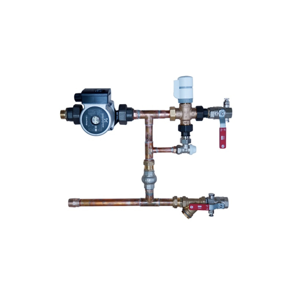 Смесительный узел КЭВ-УТМ-4H с насосом, применяется при разности давлений между прямой и обратной магистралью в месте установки завес: ΔP < 40 кПа. Смесительный узел КЭВ-УТМ-4H является комплектующим тепловых завес / тепловентиляторов / фанкойлов Тепломаш с водяным источником тепла.