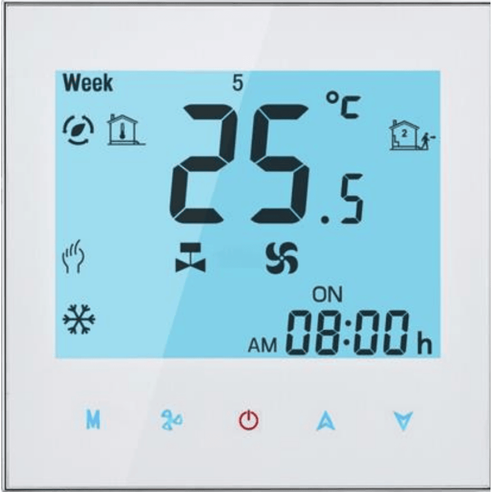 Сенсорный программируемый термостат с Wi-Fi и возможностью управления со смартфона через интернет, предназначен для регулировки и поддержания температуры.