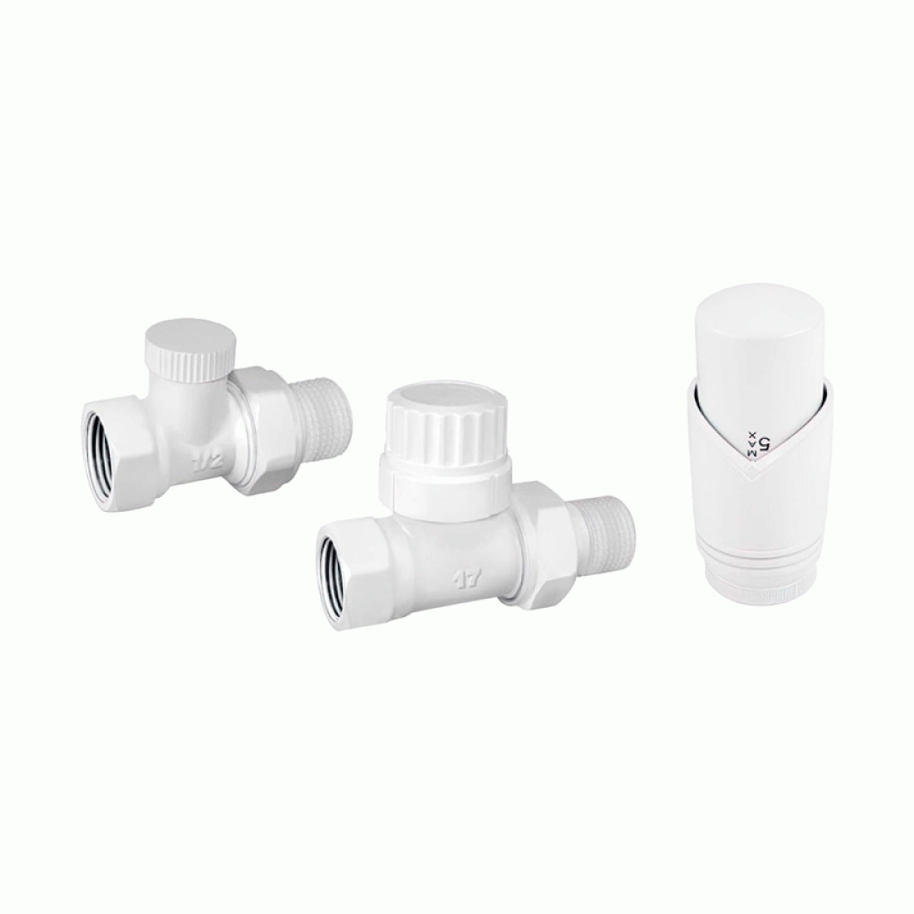 Комплект радиаторный прямой Delta 1/2" с термоголовкой М30x1.5 белый