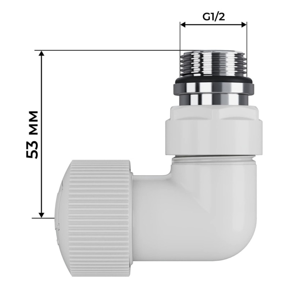 Размер подключения к радиатору 1/2”. К системе отопления набор подключается через монтажную латунную трубку диаметром 15 мм.