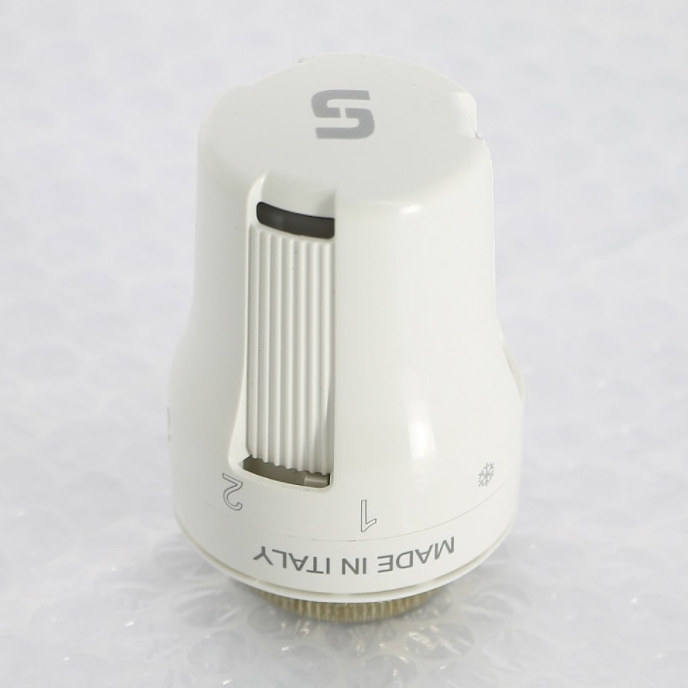 Термостатические головки устанавливаются после опрессовки (испытания давлением) системы отопления. Совместите указатель положения термостатической головки с цифрой 5. Снимите защитный колпачок термостатического вентиля и, слегка надавив головкой на шток вентиля, накрутите накидную гайку термостатической головки.Для затяжки, при необходимости, используйте сантехнические клещи с мягкими губками.
