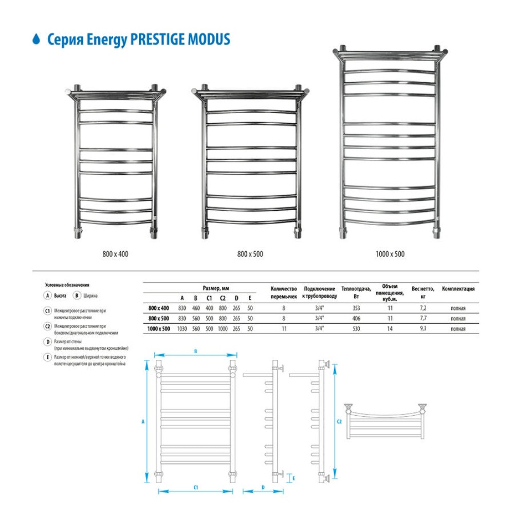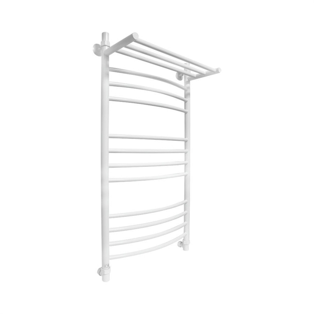 Водяной полотенцесушитель Energy Prestige Modus 1000x500 RAL 9003 (сигнальный белый) - «лесенка c полкой» c выпуклыми перемычками, размещёнными группами. Дополнительная обогреваемая полка с 3 перекладинами увеличивает тепловую мощность и полезную площадь прибора, а также позволяет максимально удобно располагать на нем вещи для просушивания. Используется во всех системах горячего водоснабжения и отопления с рабочим давлением 3 - 15 атм при температуре теплоносителя до 105°С.