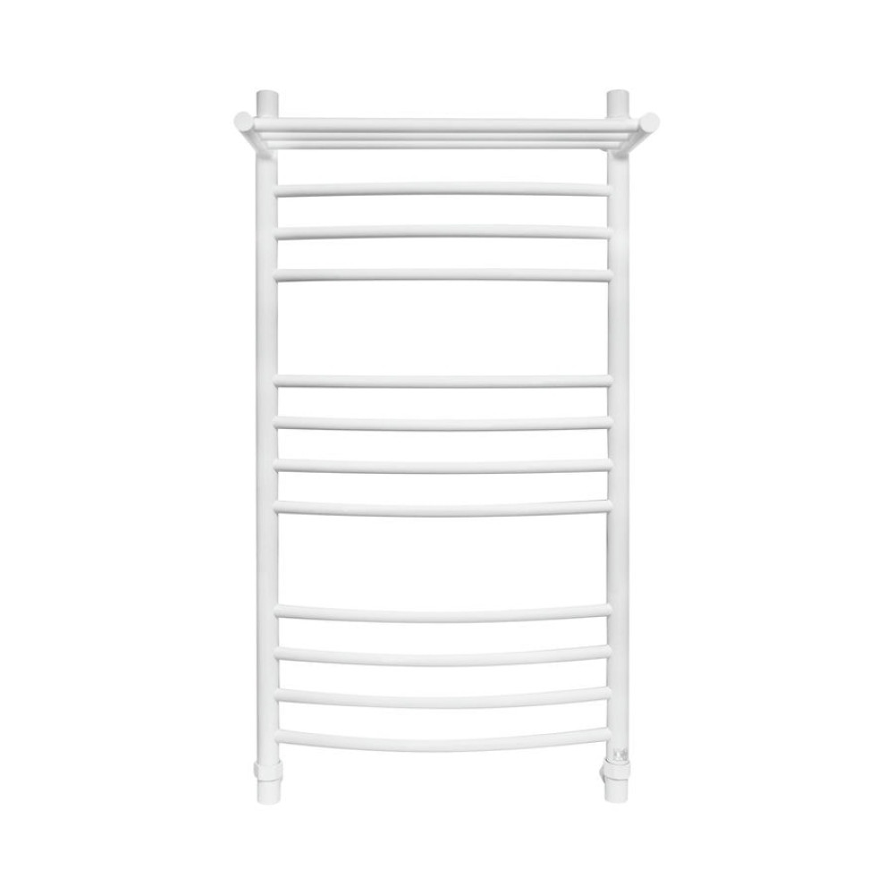 Водяной полотенцесушитель Energy Prestige Modus 1000x500 RAL 9016 (белый матовый) - «лесенка c полкой» c выпуклыми перемычками, размещёнными группами. Дополнительная обогреваемая полка с 3 перекладинами увеличивает тепловую мощность и полезную площадь прибора, а также позволяет максимально удобно располагать на нем вещи для просушивания. Используется во всех системах горячего водоснабжения и отопления с рабочим давлением 3 - 15 атм при температуре теплоносителя до 105°С.