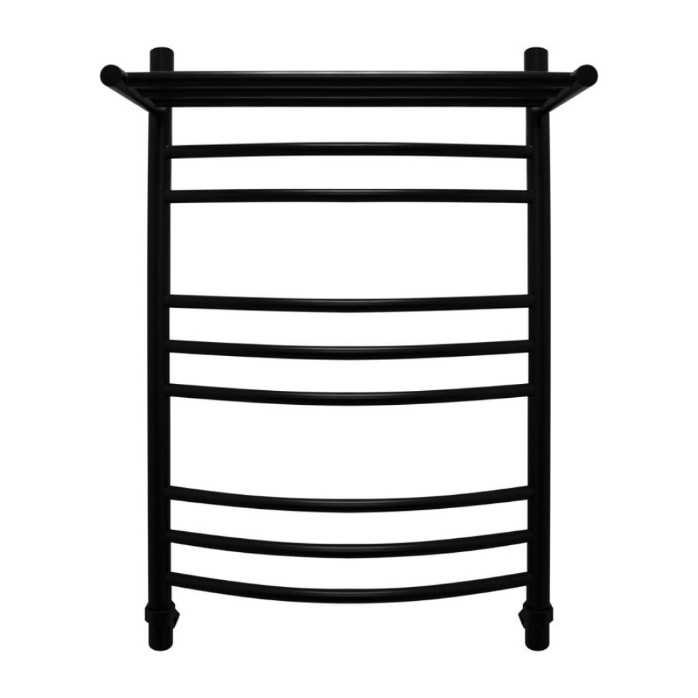 Водяной полотенцесушитель Energy Prestige Modus 800x500 RAL 9005 (черный матовый) - «лесенка c полкой» c выпуклыми перемычками, размещёнными группами. Дополнительная обогреваемая полка с 3 перекладинами увеличивает тепловую мощность и полезную площадь прибора, а также позволяет максимально удобно располагать на нем вещи для просушивания. Используется во всех системах горячего водоснабжения и отопления с рабочим давлением 3 - 15 атм при температуре теплоносителя до 105°С.