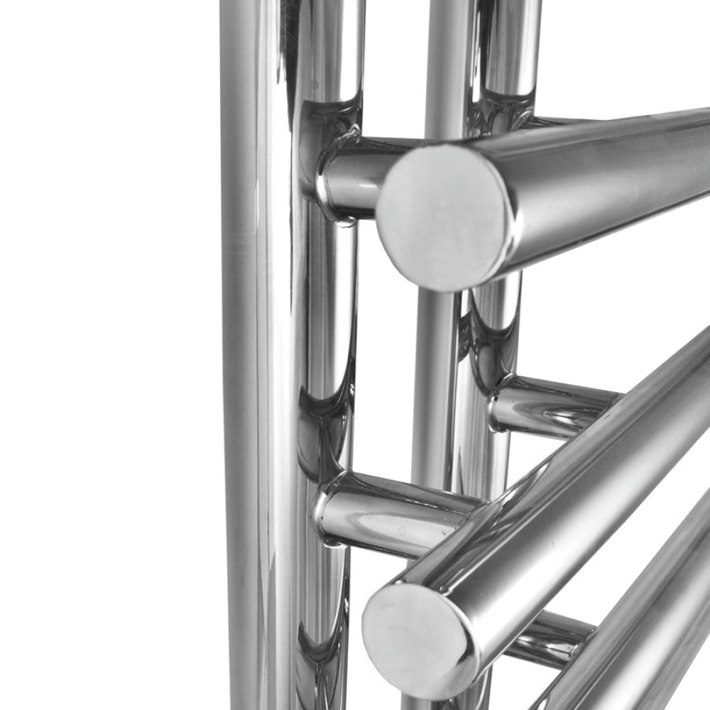 Полотенцесушитель изготовлен из высококачественной импортной пищевой нержавеющей стали марки AISI 304 (08Х18Н10). Поверхность обработана методом электроплазменной полировки, не тускнеет и устойчива к небольшим механическим повреждениям. Сварка швов выполнена по специальной технологии TIG по международному стандарту EN 10217-7. Полотенцесушитель испытан при давлении 50 атм, составляющая его труба — 150 атм, благодаря чему имеет большой запас прочности.