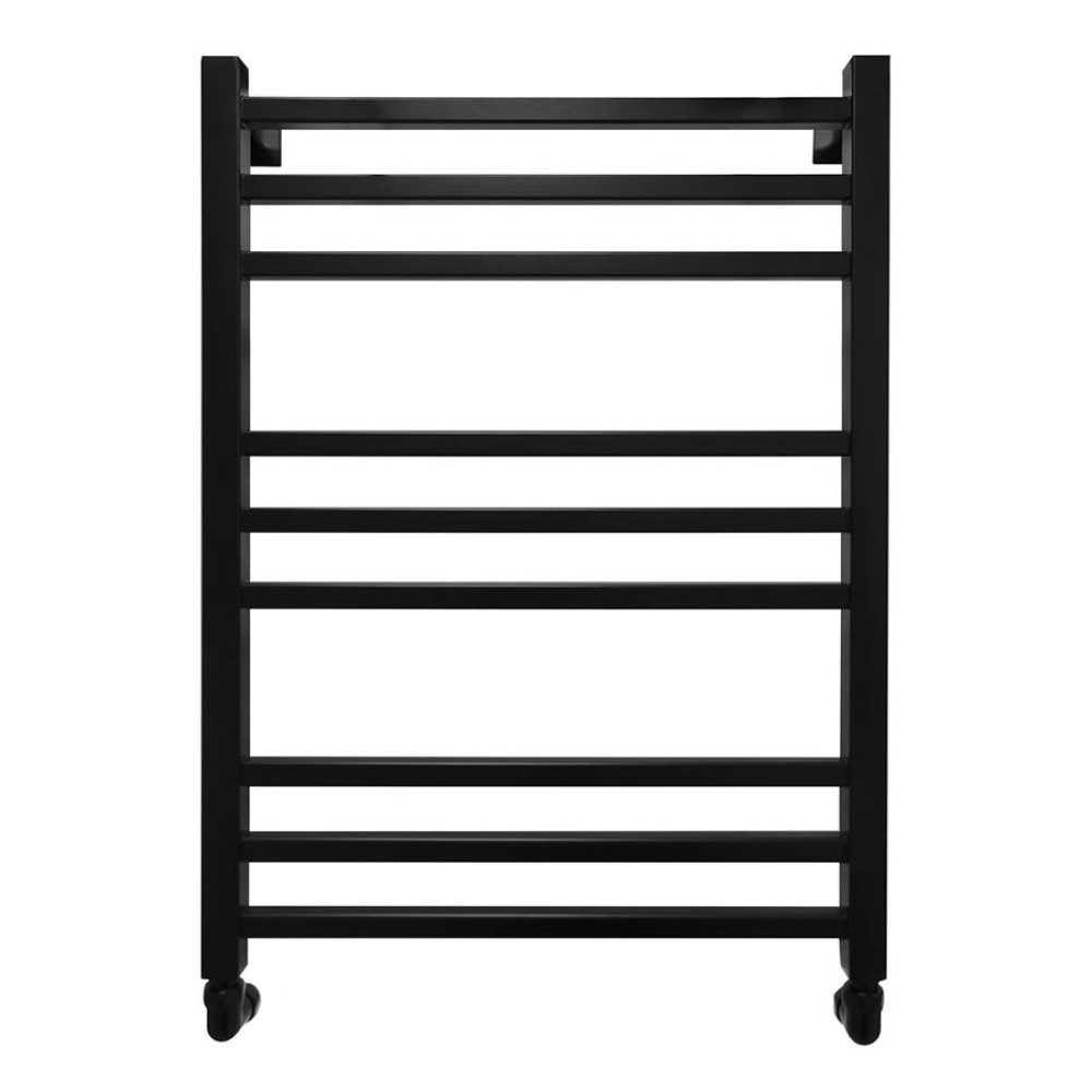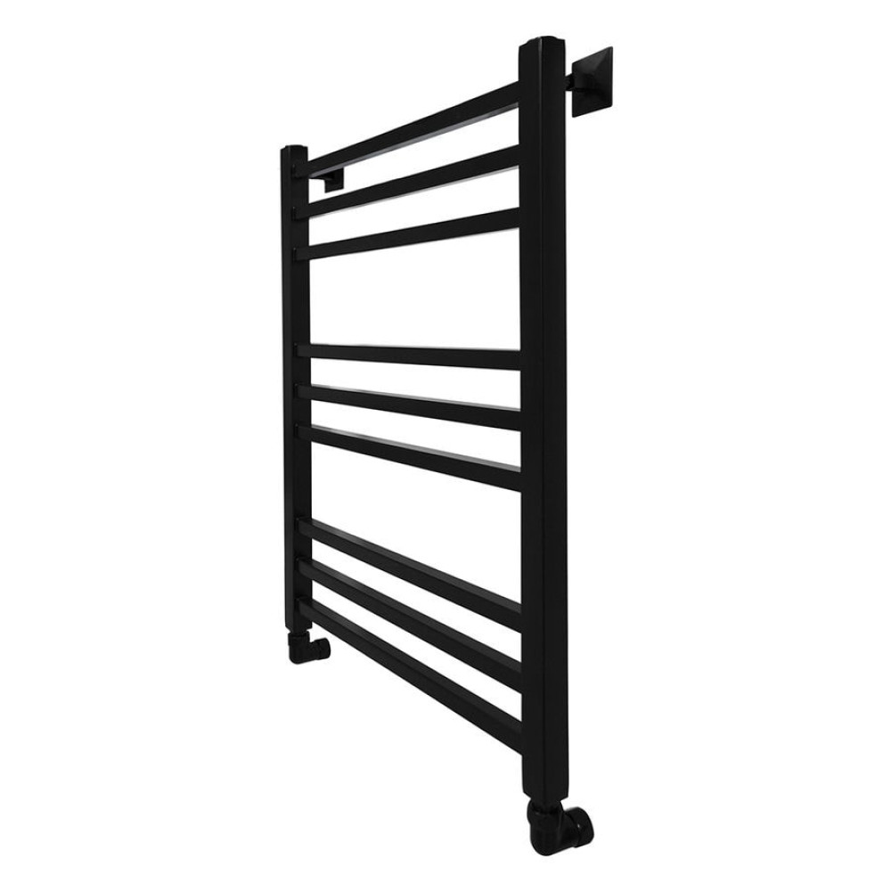 Полотенцесушитель водяной Energy Techno 800x500 RAL 9005 (черный матовый) - лесенка в современном стиле "техно" с необычными перемычками квадратного сечения, выполненная из нержавеющей стали. Используется во всех системах горячего водоснабжения и отопления с рабочим давлением 3 - 15 атм при температуре теплоносителя до 105°С.
