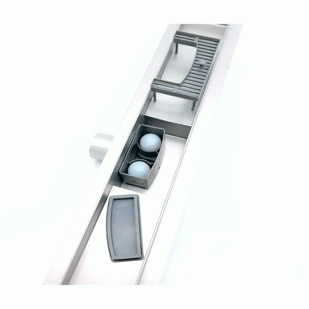 Линейный металлический трап предназначен для приема и отвода сточных вод в систему канализации. Устанавливается в душевых и там, где организован слив воды прямо на пол. Трап для душа из высококачественной нержавеющей стали SS304. Горизонтальный подвод. Сухой затвор предотвратит проникновение неприятных запахов из канализации, даже при не частом использовании. Может использоваться во всех типах помещений. Легкий доступ ко всем частям сифон, это позволит без усилий проводить обслуживание трапа. Общая монтажная высота от 85 до 155 мм. Комплектуется расходными материалами для монтажа. Лоток рекомендуется устанавливать в тех помещениях, где не предполагается частой эксплуатации сливного трапа, а следовательно, происходит его высыхание. Это могут быть: дома отдыха, санатории, дачи и т.д. Во время высыхания гидрозатвора, уровень воды в сифоне постепенно уменьшается и пластиковые шарики западают в дренажные отверстия. После полного высыхания, шарики плотно закрывают отверстия, создавая тем самым сухой гидрозатвор и препятствуют проникновению запахов из канализации.Характеристики