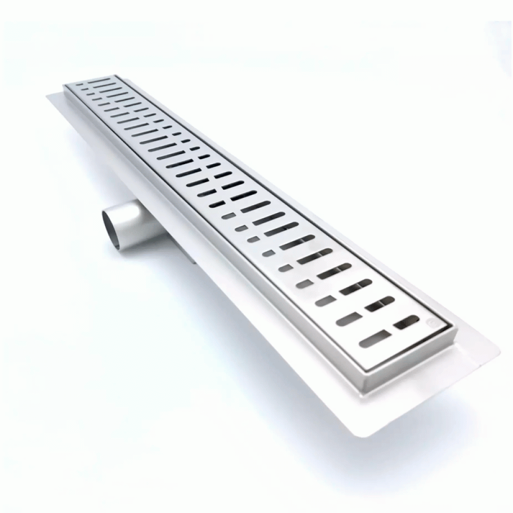 Трап в полу с горизонтальным выпуском Tim - предназначен для отвода воды с пола или поддона под душем для дальнейшего сброса в канализацию. Данный душ - трап в полу представляет собой форму прямоугольника с отверстиями разного диаметра дизайнерских расположенных по поверхности.