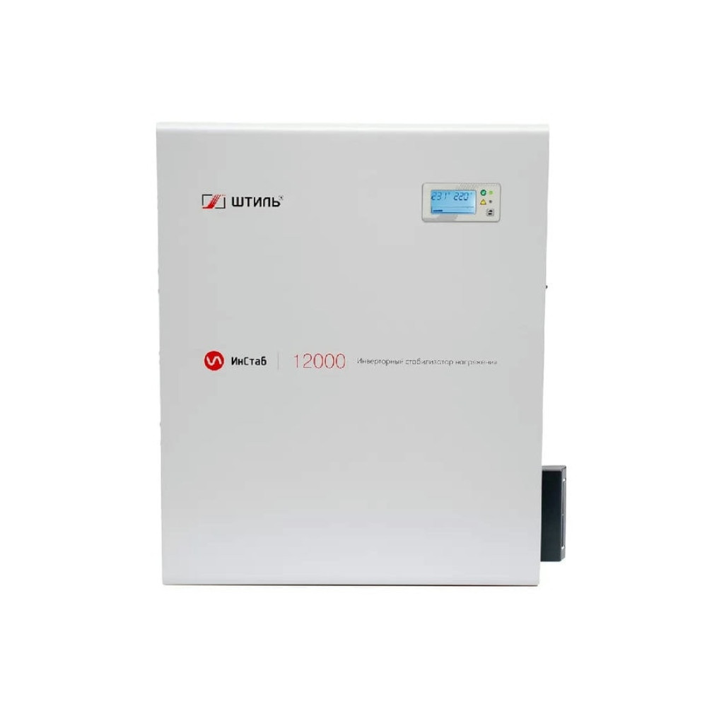 Инверторный стабилизатор напряжения "Штиль" инстаб 12000 мощностью 12000 ВА / 10000 Вт выполнен в виде блока для настольного или настенного размещения. Подключения к сети осуществляется через клеммную колодку.