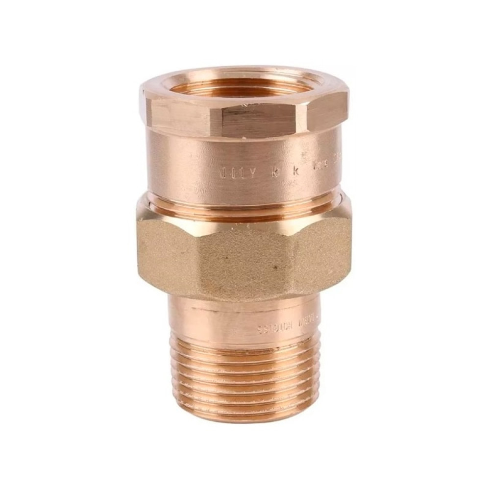 Американка Viega 1" НР/ВР бронза (серия 3331 Виега) внутренняя/наружная резьба (арт. 271350) с одной из сторон снабжена самоуплотняющейся внутренней цилиндрической резьбой (Rp) размером наружная/внутренняя с другой - самоуплотняющейся наружной конической резьбой (R) размером 1". Фитинг дополнен плоской уплотнительной прокладкой из AFM 34 - безопасного для здоровья человека материала, не содержащего асбеста. Соединение частей муфты осуществляется с помощью накидной гайки. Для упрощения затяжки каждая из частей фитинга имеют внешнюю форму в виде шестигранника для фиксации гаечным ключом.