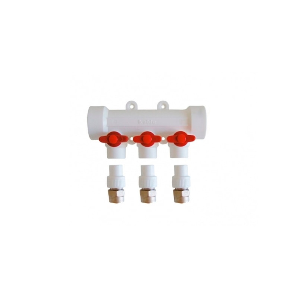 Коллектор Kalde на 3 выхода полипропиленовый (цвет ручек красный) 3262-mnr-400320 служит для распределения и перекрытия потока рабочей среды. Коллектор имеет возможность отключения (перекрытия) каждого отдельного контура благодаря встроенным запорным кранам. Соединение с трубопроводом осуществляется методом диффузионной сварки.