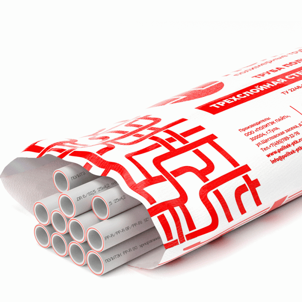 Трубы Политэк PN25 SDR 6 отгружаются оптом в упаковках по 4 м или 2 м. Монтаж таких полимерных труб и фитингов выполняется с помощью специального сварочного аппарата.
