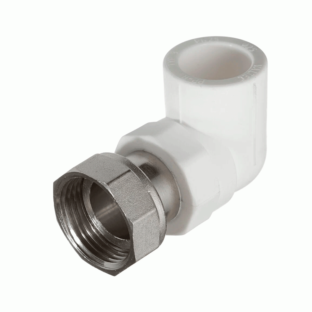 Угольник с накидной гайкой используется для соединения под углом 90о полипропиленовых (PPR) труб с резьбовым фитингом с наружной металлической резьбой. Такой угольник имеет внутреннюю резьбу и применяется в системах хозяйственно-питьевого водоснабжения и низкотемпературного отопления, высокотемпературного отопления отопительными приборами, а также в системах перекачки других жидких и газообразных сред, к которым материал угольника химически стоек. Применяется при максимальной температуре перекачиваемой воды - 80ºС (кратковременная - 95ºС). Гарантия 10 лет. Срок службы при правильной эксплуатации - не менее 50 лет.