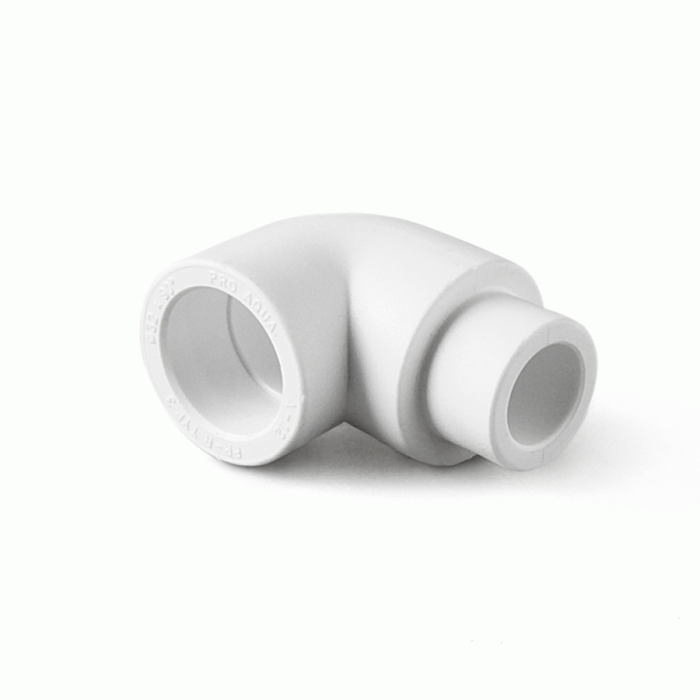 Полипропиленовые переходные угольники PRO AQUA ВН под углом 90 градусов - соединительные элементы для полипропиленовых трубопроводов холодного и горячего водоснабжения, используемые в случае необходимости изменить направление прокладки трубопровода с поворотом на 45°- 90° градусов или при обходе прямых углов. Подходят для монтажа труб разного диаметра.