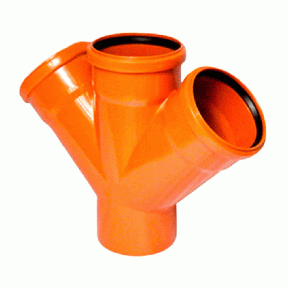 Такие фитинги, используются в составе наружных канализационных сетей диаметром 110, 160, 200 мм, предназначенных для отвода сточных вод от индивидуальных жилых домов или небольших административных зданий до коллектора, собирающего канализационные стоки с нескольких подобных строений.