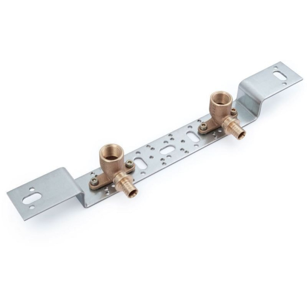 В комплекте с 2 настенными короткими угольниками 16-Rp 1/2, (арт. 14563891001), смонтированными на коротком кронштейне типа 0 75/150. Общая длина 46 мм, длина кронштейна 30 мм, расстояние между центрами настенных угольников 150 мм.