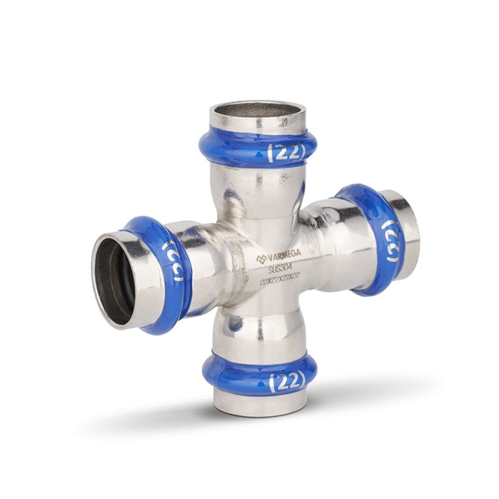 Крестовина равнопроходная раструбная Varmega Inox Press 18х18х18х18 мм